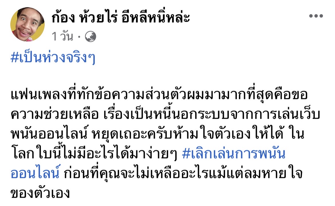 "ก้อง ห้วยไร่" ไม่ขอช่วยเรื่องนี้!! หลังแฟนเพลงขอความช่วยเหลือ เหตุเป็นหนี้นอกระบบเพราะเว็บพนันออนไลน์