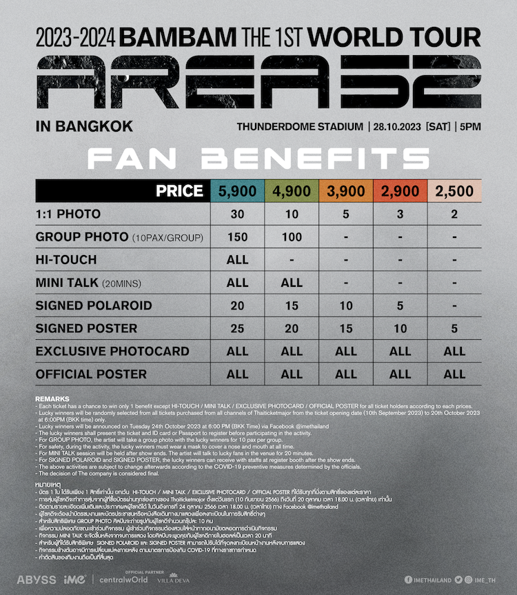 นับถอยหลังที่เหล่าอากาเซ่ไทยจะได้ร่วมร้องร่วมแดนซ์และเฮฮาไปกับ “แบมแบม - กันต์พิมุกต์ ภูวกุล” (BamBam) สมาชิกชาวไทยแห่งบอยแบนด์วง “ก็อตเซเว่น” (GOT7) จากเกาหลีใต้ ที่เตรียมมีเวิลด์ทัวร์คอนเสิร์ตเดี่ยวครั้งแรกในไทยกับงาน 2023-2024 BamBam THE 1ST WORLD TOUR [AREA 52] in BANGKOK ในวันเสาร์ที่ 28 ตุลาคมนี้ ณ ธันเดอร์โดม สเตเดียม (Thunderdome Stadium) เวลา 17.00 น.