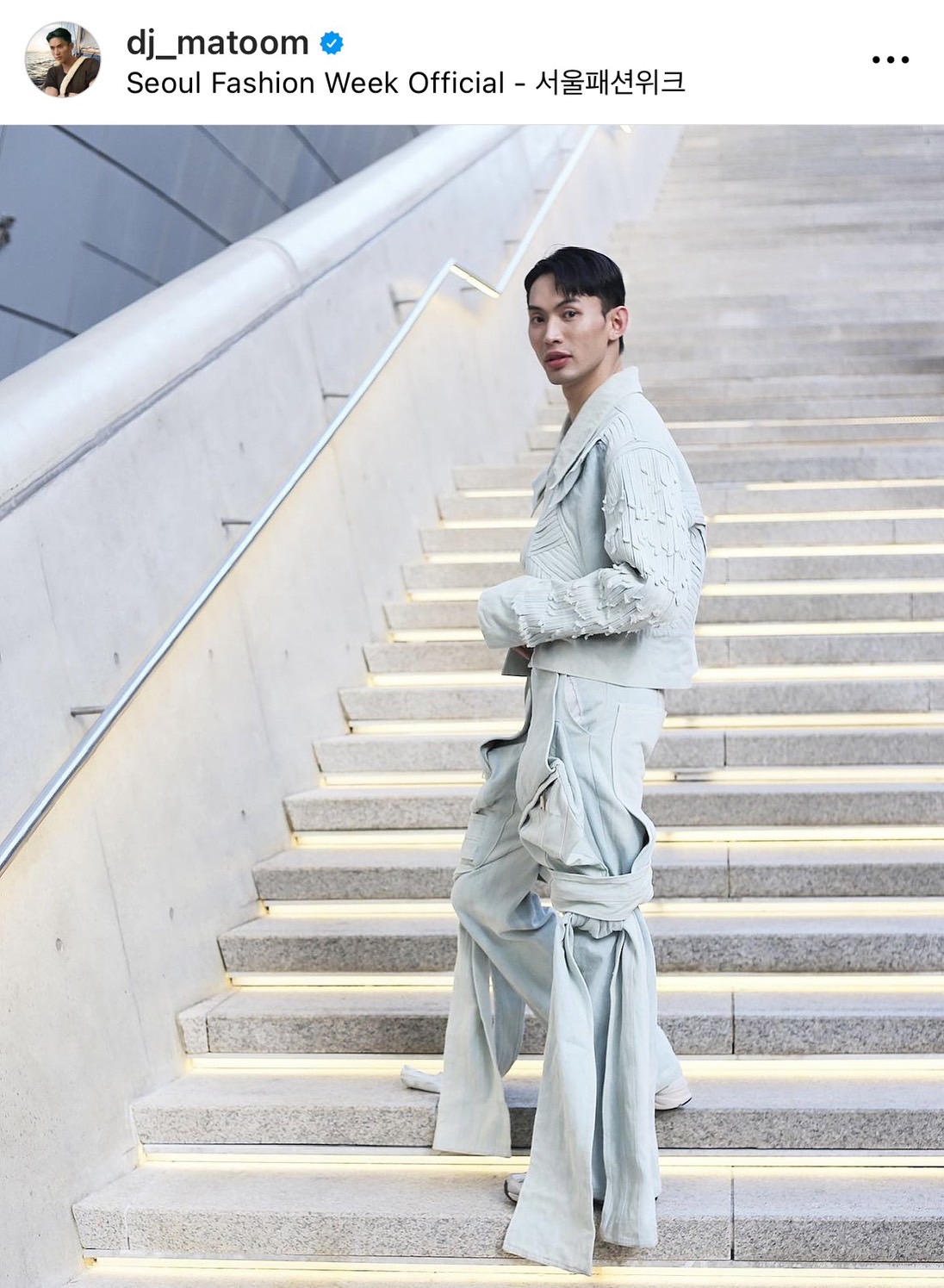 โดย "ดีเจมะตูม" ได้โพสต์ภาพความประทับใจลงในอินสตาแกรมส่วนตัว @dj_matoom และระบุแคปชั่นว่า 'Seoul fashion week #day3 สำหรับลุค first gate วันนี้ มะตูมคิดอยู่นานมากว่าจะเลือกใส่แบรนด์ไหนดี จะเป็นไฮเอนหรือแบรนด์ต่างประเทศไปเลย สุดท้ายมะตูมเลือก "ชุดนักศึกษาทีสิต" เป็นแบรนด์เด็กไทยแท้ ตัดเย็บโดยดีไซน์เนอร์เลือดใหม่ไฟแรง @chaytoninblack ซึ่งยอมรับว่าตัดสินใจถูกมากๆๆ เพราะทุกคนมองแล้วชื่นชมชุดนี้มาก แถมโดนสื่อต่างประเทศขอสัมภาษณ์ถึงชุดนี้และแบรนด์ไทยด้วย ตูมดีใจครับที่ได้พรีเซนท์ให้ทุกคนที่นี่เห็นว่า ดีไซนเนอร์ไทย มีฝีมือและเก่งไม่แพ้ของชาติไหนเลยเช่นเดียวกัน และมะตูมก็ภูมิใจมากนะครับที่มีโอกาสได้มารันเวย์ระดับโลก และไม่ได้มาเพียงคนเดียว แต่ยังพาฝีมือคนไทยเก่งๆ ติดตัวมาให้ชาวโลกที่นี่เห็นด้วย ยังไงฝากทุกคนซับพอร์ตให้เหล่าไทยดีไซนเนอร์ด้วยครับ เพราะคำว่า..."แฟชั่น ไม่มีเชื้อชาติครับ @seoulfashionweek_official'