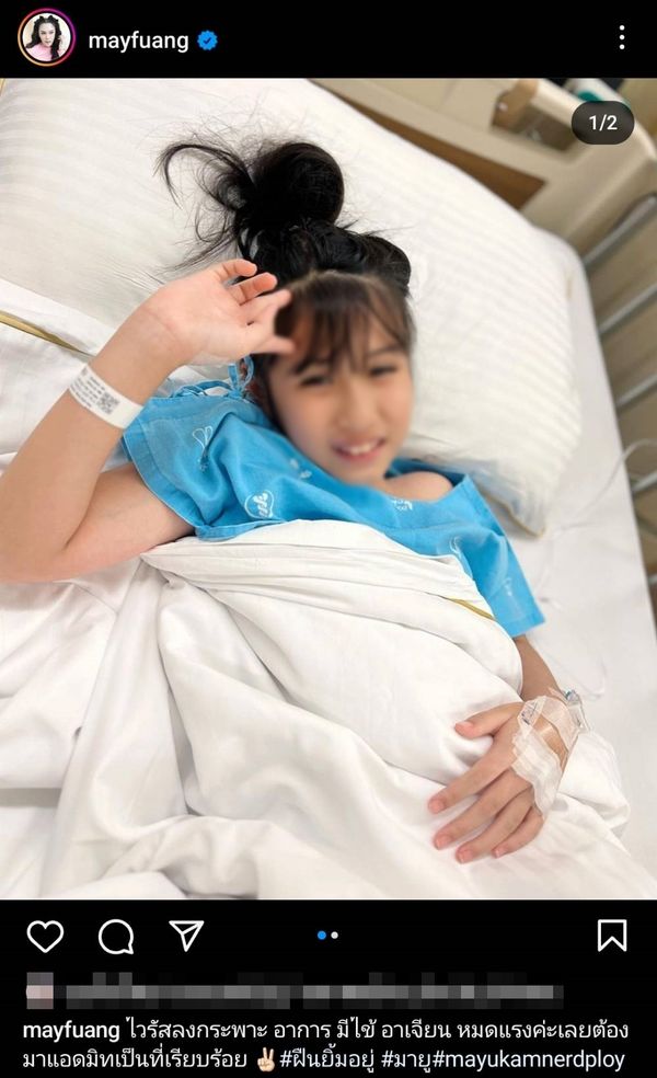 ก่อนหน้านี้คุณแม่ยังสวย “เมย์ ปทิดา กำเนิดพลอย” ได้ออกเผยว่าลูกสาว “น้องมายู” ต้องแอ็ดมิทเข้าโรงพยาบาลด้วยอาการป่วยจากไวรัสลงกระเพาะ แถมยังมีอาการ มีไข้ อาเจียนจนหมดแรง