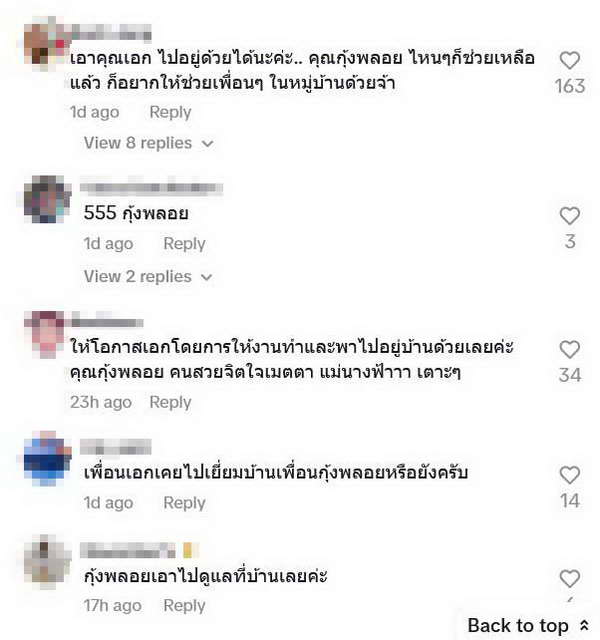 "ตอนนี้เขาอยู่ชั้น 2 และได้รับการลงโทษของเขาเรียบร้อยแล้ว เราทำหน้าที่ของเพื่อนได้เท่านี้ ซัพพอร์ต ให้กำลังใจซึ่งกันและกัน เขาโดนด่าเยอะแล้ว ส่วนเราก็ได้ต่อว่าเขาไปแล้วนิดๆ หน่อยๆ ว่าต้องปรับเปลี่ยน แล้วก็เตือนสติ กุ้งพลอยให้โอกาสคน ให้โอกาสตัวเองและผู้อื่น เชื่อว่าเขาทำสามารถปรับเปลี่ยนตัวเองได้"