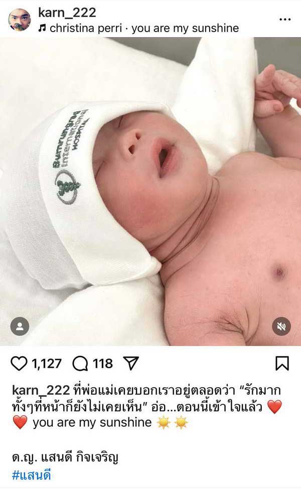 "ที่พ่อแม่เคยบอกเราอยู่ตลอดว่า “รักมากทั้งๆที่หน้าก็ยังไม่เคยเห็น” อ่อ…ตอนนี้เข้าใจแล้ว you are my sunshine ด.ญ. แสนดี กิจเจริญ #แสนดี"