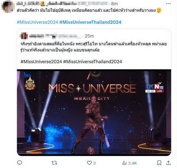 ซึ่งหลังจากนั้นในโลกโซเชี่ยลก็มีการวิพากษ์วิจารณ์ถึงเหตุการณ์ดังกล่าว และมีหลายคนมองว่าอาจไม่ใช่ "อุบัติเหตุ" แต่คือ "ความตั้งใจ" หรือเปล่า และมีการเชื่อมโยงไปยังประวัติศาสตร์ของ พระสุริโยไท ในครั้งออกรบว่าก็ถูกฟันจนเครื่องหัวหลุดออกมา จนทำให้ทราบว่าเป็นสตรี บ้างก็บอกว่า ถอดเครื่องหัว เตรียมรับมงฯที่ 3
