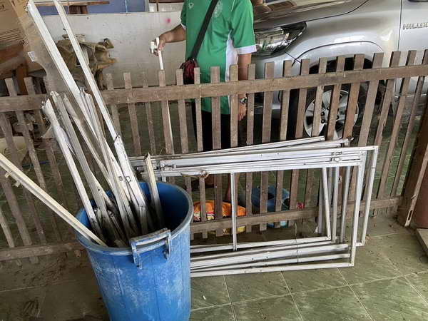ซึ่งในภาพประกอบด้วยเอกสารแจ้งความกับเจ้าหน้าที่ตำรวจ และเผยให้เห็นความเสียหายของบ้านและเครื่องใช้ไฟฟ้าต่างๆที่ถูกรื้อแปลงสภาพพร้อมกลับมาขนไปอีกรอบ ไม่ว่าจะเป็นกรอบประตูมุ้งลวด เครื่องปรับอากาศ ทีวี ปั๊มน้ำ ฯลฯ ที่เละไม่มีชิ้นดี