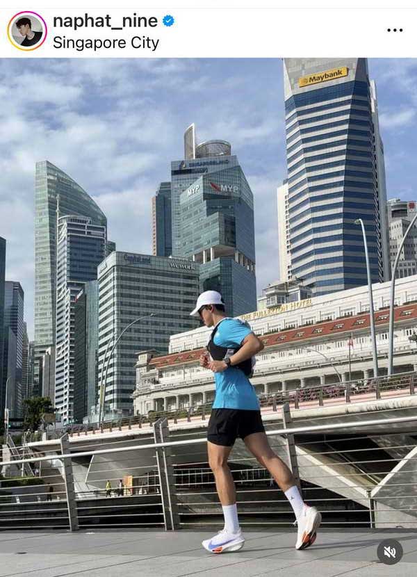 โดยที่ นาย ได้โพสต์ภาพบรรยากาศในสนามแข่งขัน ไว้พร้อมข้อความว่า " My First Half Marathon 21.61 km #SingaporeMarathon #Singapore #ItsNineLife #SCSM2024 "