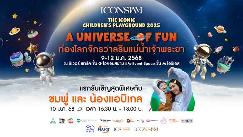 ไอคอนสยาม ฉลองวันเด็กปี 2568 จัดงาน “The ICONIC Children's Playground 2025” ยกเอากาแล็กซีมาให้เด็ก ๆ ได้สวมบทบาทเป็นนักบินอวกาศตัวน้อย ร่วมผจญภัยไปในธีมสุดหรรษา “A Universe of Fun” จัดเต็มกิจกรรมแสนสนุกมากมายที่เปิดโอกาสให้ได้เรียนรู้ไปพร้อมกับการเล่นสนุก พร้อมขนมและเครื่องดื่มที่หนู ๆ ชื่นชอบ ตลอด 4 วันเต็ม
