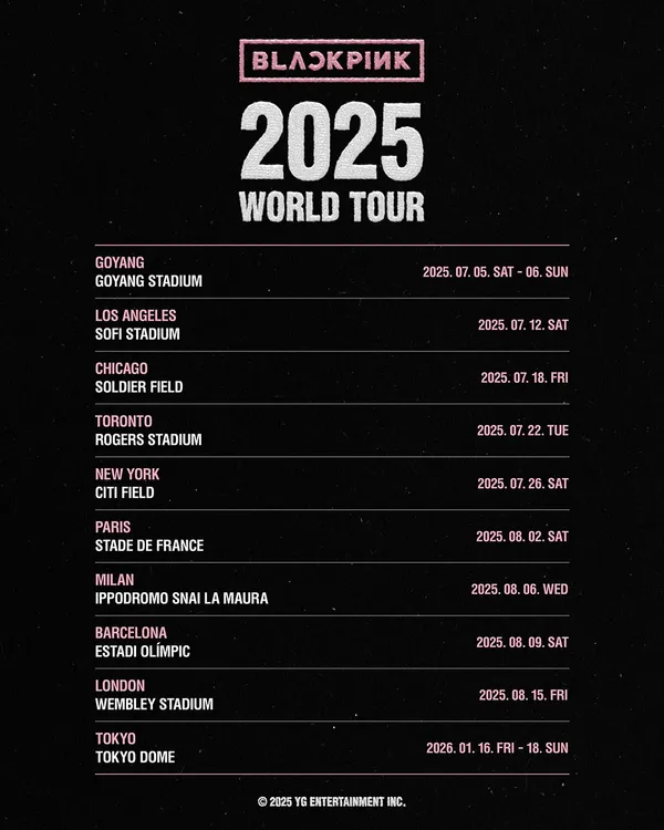 เมื่อวันที่ 19 กุมภาพันธ์ 2568 ที่ผ่านมา BLACKPINK เกิร์ลกรุ๊ปชื่อดังของเกาหลีใต้ โรเซ่ (Rosé) , เจนนี่ (Jennie), จีซู (Jisoo) และลิซ่า (Lisa) ได้ประกาศอย่างเป็นทางการสำหรับคอนเสิร์ต World Tour ปี 2025 ที่ทุกคนตั้งตารอคอย โดยมีคอนเสิร์ตมากมายในหลายเมืองใหญ่ๆ ทั่วโลก การประกาศดังกล่าวได้สร้างความตื่นเต้นอย่างมากให้กับแฟน ๆ