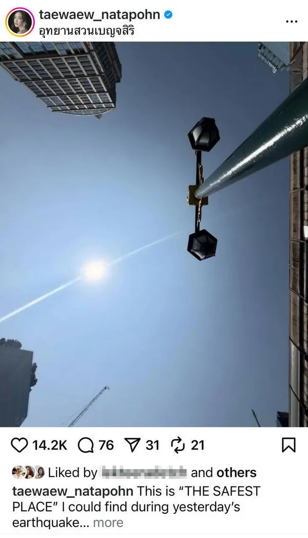 ขอเป็นกระบอกเสียง แต้ว ณฐพร โพสต์อยากอยากเห็น "พื้นที่โล่ง" ในกรุงเทพมากขึ้น หลังเกิดเหตุ แผ่นดินไหว ทุกคนต้องการพื้นที่ "ปลอดภัย" ในสถานการณ์ฉุกเฉิน