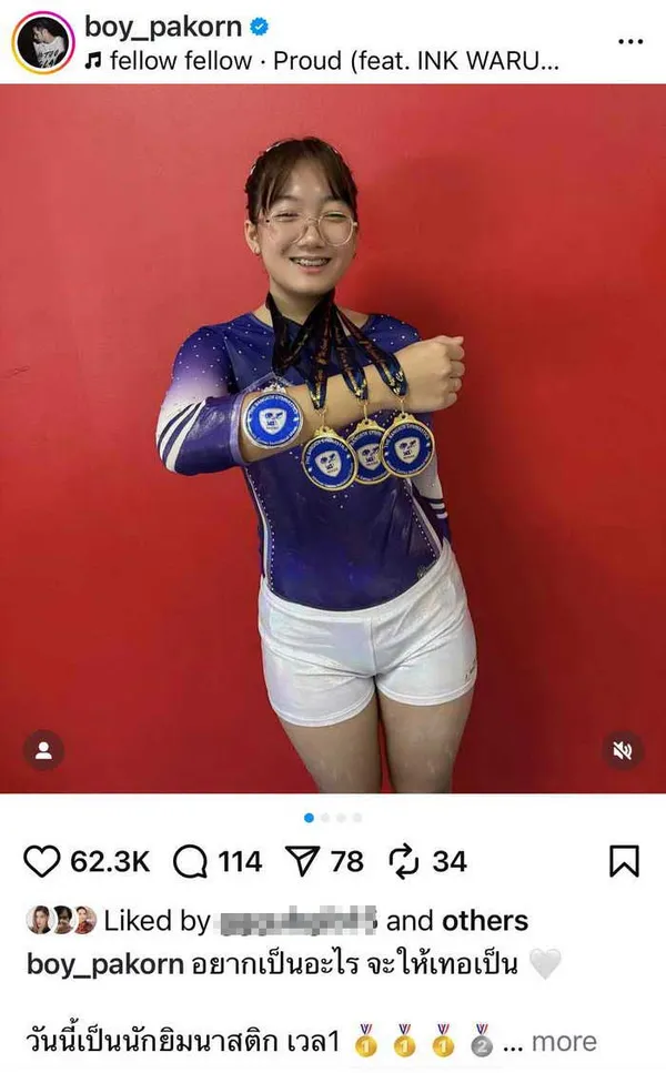 เป็นปลื้ม! บอย ปกรณ์ ชื่นชม วันใหม่ น้องสาวคนเล็กของบ้าน ฉัตรบริรักษ์ ที่ล่าสุดลงแข่งขันยิมนาสติก และคว้าเหรียญรางวัลมาได้ถึง 4 เหรียญ แฟนคลับร่วมแสดงความยินดีแน่นไอจี