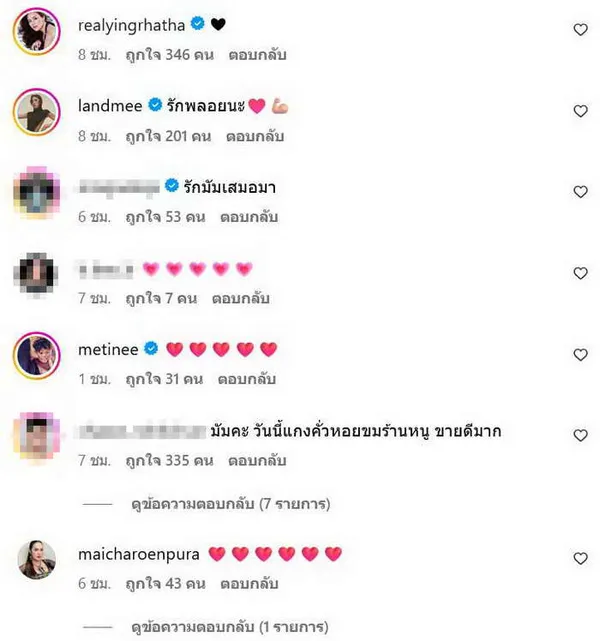 ทำเอาทั้งเพื่อนๆในวงการบันเทิงหลายคน และเหล่าแฟนคลับ อดเป็นห่วงสภาพจิตใจของนักแสดงสาวไม่ได้ แห่เข้ามาคอมเมนต์ส่งกำลังใจกันอย่างต่อเนื่อง อาทิ
