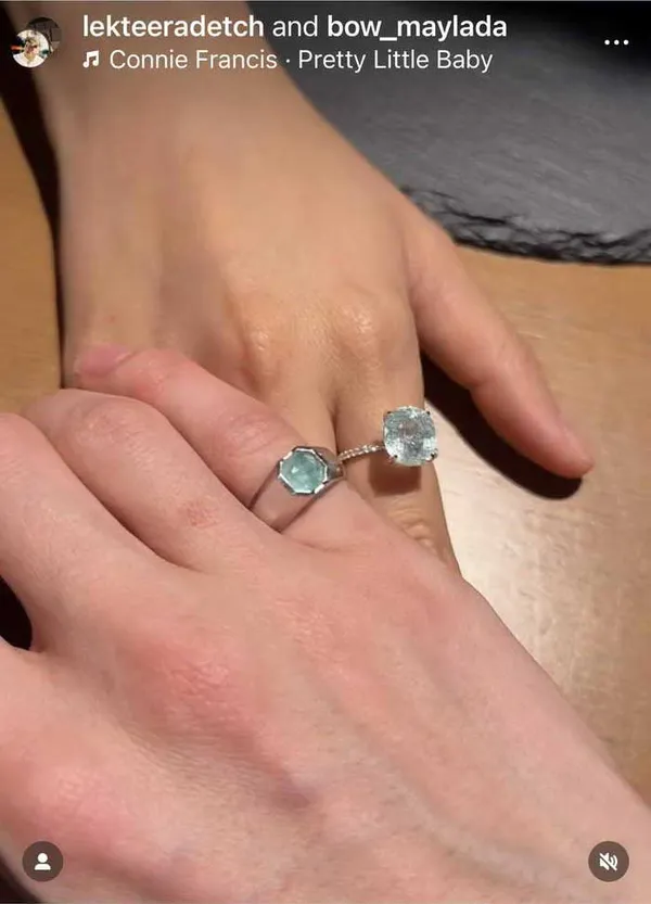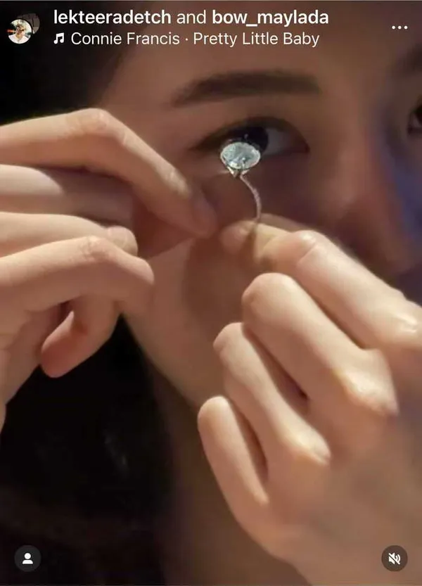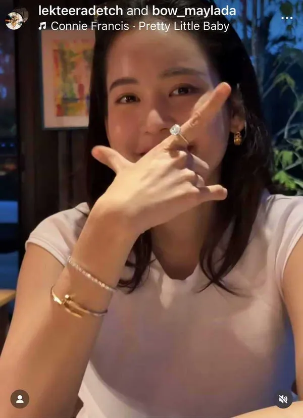 แต่เมื่อสังเกตุดีๆแล้ว โบว์ เมลดา ได้สวมแหวนวงดังกล่าวที่นิ้วชี้ ทำเอาแฟนๆต้องเชียร์กันต่อไป สำหรับข่าวดีของคู่รักคู่นี้