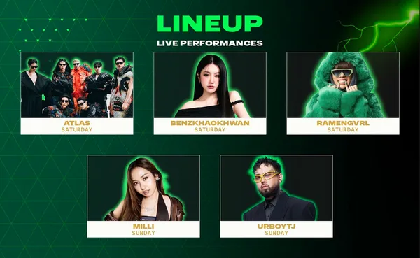 โดยงานนี้จะได้พบกับแรปเปอร์สาวสุดฮอต “Milli” (มิลลิ) สาวมหัศจรรย์สุดยอดแห่งวงการดนตรี ที่ศิลปินเดี่ยวชาวไทยคนแรกที่ได้ขึ้นเวทีหลักของ Coachella มาพร้อมด้วย “RAMENGVRL” ไอคอนแรปเปอร์ระดับแนวหน้าของ (SEA) ที่บินตรงมาจากอินโดนีเซีย, ศิลปินฮิปฮอปชื่อดังของเมืองไทย “URBOYTJ” (ยัวร์บอยทีเจ) เจ้าของเพลงฮิตมากมายมาร่วมเรียกเสียงกรี๊ดจากแฟน ๆ และปิดท้ายด้วยดาวรุ่งพุ่งแรงแห่งวงการ T-POP อย่าง วง “ATLAS” (แอทลาส) จะมาสร้างสีสันและการแสดงที่เต็มไปด้วยพลัง พร้อมระเบิดพลังแฟนคลับจากทั่วทุกมุมโลก เพื่อสร้างประสบการณ์ทางดนตรีและกีฬา E-sports ให้ตื่นเต้นเร้าใจกว่าเดิม