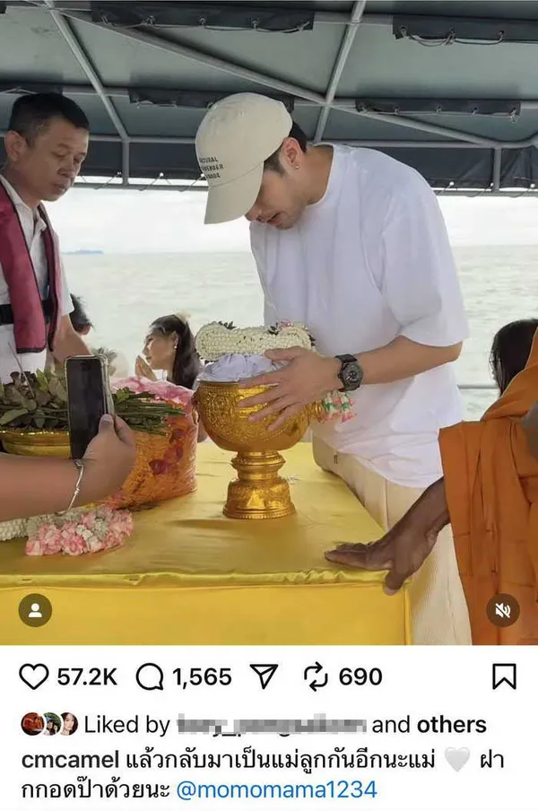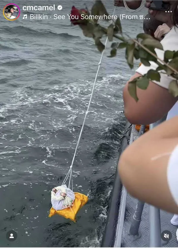 ส่งควงวิญญาณอยู่เคียงคู่กัน! 3 หนุ่ม ฉัตรบริรักษ์ บอย ปกรณ์ , หน่อง ธนา และ ภัทร์ พร้อมด้วย น้องวันใหม่ ลูกสาวบุญธรรม ประกอบพิธีลอยอังคารเถ้ากระดูก แม่งามทิพย์ ลงทะเลพัทยาสถานที่เดียวกับคุณพ่อผู้ล่วงลับไปก่อนหน้านี้