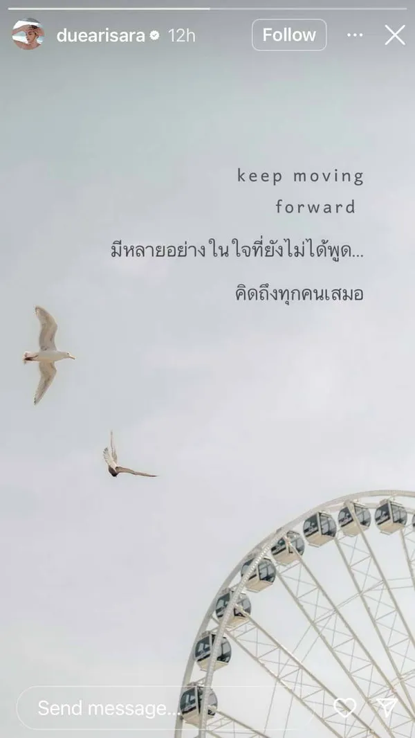 แต่ล่าสุดมีความเคลื่อนไหวในอินสตาแกรมส่วนตัวของ ดิว อริสรา มีการโพสต์สตอรี่เป็นข้อความว่า "keep moving forward มีหลายอย่างในใจที่ยังไม่ได้พูด…คิดถึงทุกคนเสมอ"