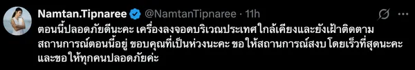 กลายเป็นเรื่องใหญ่ของโลกไปแล้วในตอนนี้สำหรับสงครามตะวันออกกลางที่ดูเหมือนทีท่าจะรุนแรงมากขึ้น ล่าสุดได้มีการโจมตีไปยังประเทศกาตาร์ทำให้ต้องปิดน่านฟ้า พร้อมทั้งกระทบไปยังผู้ที่เดินทางด้วยสายการบินของประเทศนี้ แน่นอนว่าผู้ได้รับผลกระทบหนึ่งในนั้นคือสาว "น้ำตาล ทิพนารี" ที่ก่อนหน้านี้เธอได้บินไปร่วมงานชมโชว์จากแบรนด์หรูที่ประเทศอิตาลีและกำลังจะกลับประเทศไทย ซึ่งสามารถบินมาจากอิตาลีลงกาตาร์ได้ โดยเธอได้โพสต์ข้อความสื่อสารกับแฟนๆ ว่า "ตอนนี้ปลอดภัยดีนะคะ เครื่องลงจอดบริเวณประเทศใกล้เคียงและยังเฝ้าติดตามสถานการณ์ตอนนี้อยู่ ขอบคุณที่เป็นห่วงนะคะ ขอให้สถานการณ์สงบโดยเร็วที่สุดนะคะ และขอให้ทุกคนปลอดภัยค่ะ"