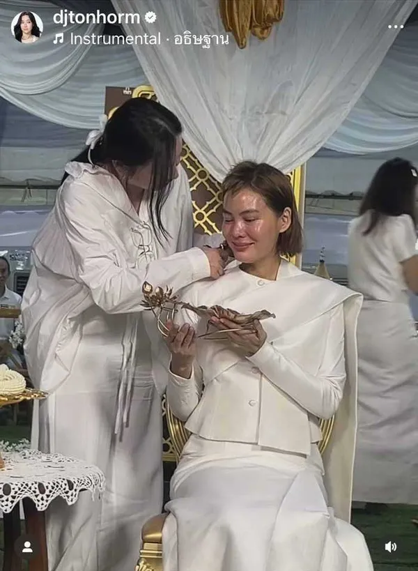 ซึ่งเมื่อช่วงเช้ามืดที่ผ่านมามีพิธีปลงผมก่อนเข้าพิธีบรรพชา โดยมีพี่น้องในวงการบันเทิงมาร่วมอนุโมทนาบุญในครั้งนี้อย่างคับคั่ง อาทิ อั้ม อธิชาติ, พงษ์พัฒน์ วชิรบรรจง และภรรยา, ต้นหอม ศกุนตลา, เเอน อลิชา , วุ้นเส้น วิริฒิพา เเละ พลอย เฌอมาลย์ เป็นต้น