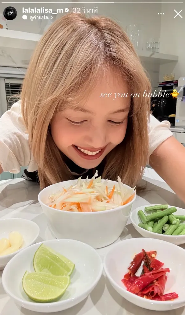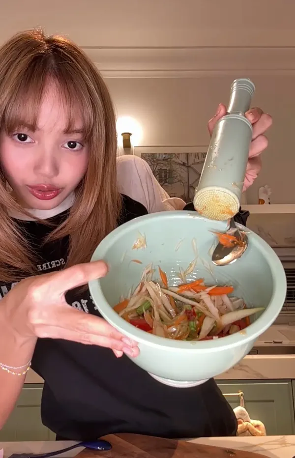 ปิดท้ายที่เมนูส้มตำที่เธอได้เตรียมวัตถุดิบ พร้อมทั้งทำให้แฟนๆ ทั่วโลกได้เห็นถึงวัฒนธรรมอาหารของคนไทย ในแบบฉบับของสาวลิซ่า ทำเอาแฟนคลับหลายคนเปรี้ยวปาก และเข้าไปแซวเธอในไลฟ์เป็นจำนวนมาก แม้ว่าวัตถุดิบบางอย่างจะถูกตัดทอนลงไปบางแต่ก็เห็นถึงความตั้งใจในการที่อยากนำเสนอเมนูอาหารไทยสู่สายตาชาวโลก นับเป็นอีกหนึ่งซุปเปอร์สตาร์ที่ผลักดันซอฟต์พาวเวอร์อาหารไทยอย่างมาก