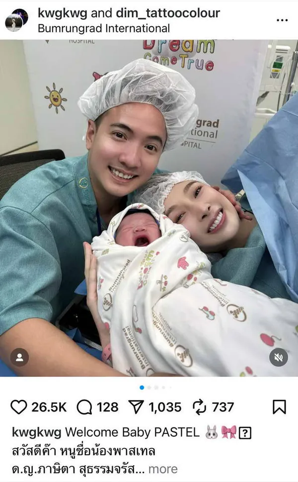 โดยที่ในอินสตาแกรมของคุณแม่ ได้มีการโพสต์ภาพในห้องคลอดเปิดตัว "น้องพาสเทล" พร้อมข้อความแนะนำตัวว่า..