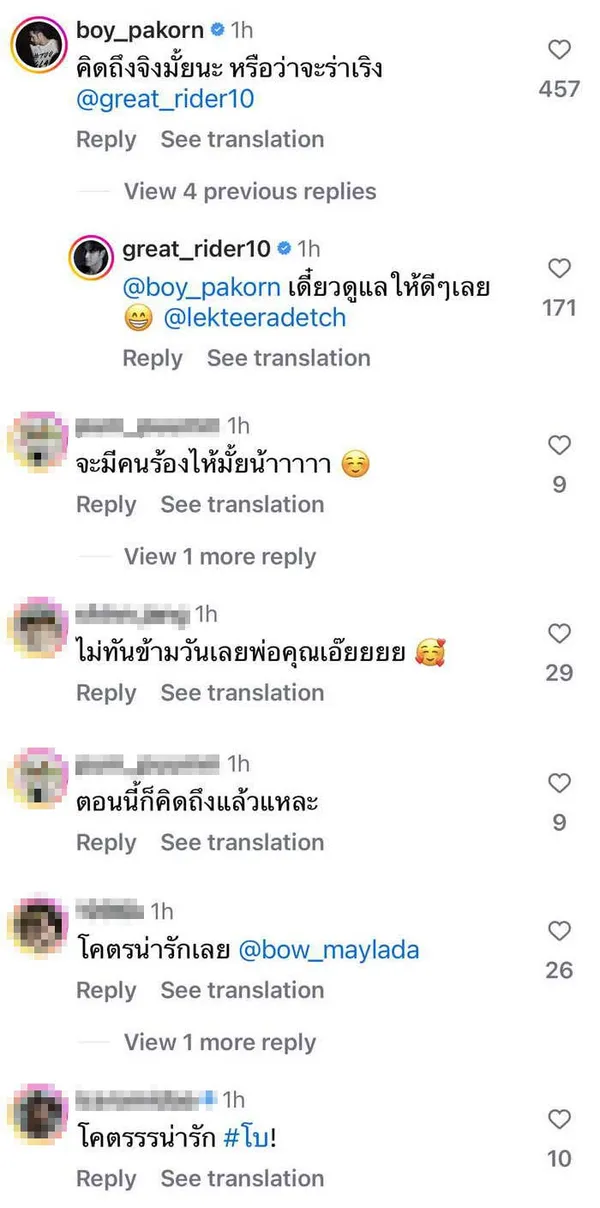 งานนี้เลยเจอทั้งเพื่อนๆ และชาวเน็ตเข้ามาคอมเมนต์แซวกันสั่นไอจี อาทิ จะมีคนร้องไห้มั้ยน้าาาาา, ความคิดถึงกำลังทํางานแล้ว เอ็นดูเลย, น่ารักจังเลยพี่อาเล็กพี่โบว์, ไม่ทันข้ามวันเลยพ่อคุณเอ๊ยยยย, คิดถึงน้องแล้วอะทำไง ตั้ง 2 เดือน, ยังไม่ทันไปก็คิดถึงแย้วหย๋อเอ็นดู, คิดถึงก็บินไปเรียนด้วยเลยค่ะพี่อาเล็กจะได้หายคิดถึง ฯลฯ