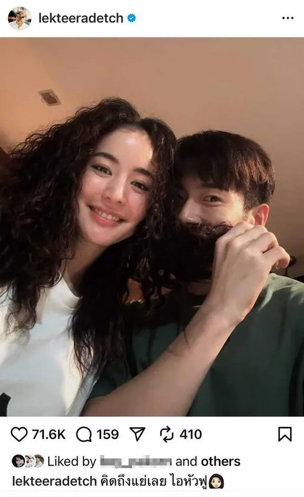 ซึ่งล่าสุดหนุ่ม อาเล็ก ธีรเดช เมธาวรายุทธ ก็ได้โพสต์ภาพคู่แฟนสาว ก่อนเดินทางไปส่งเดินทางที่สนามบิน เผยให้เห็นลุคใหม่สุดเก๋ของสาว โบว์ เมลดา พร้อมแคปชั่นสุดหวานว่า "คิดถึงแย่เลย ไอหัวฟู"
