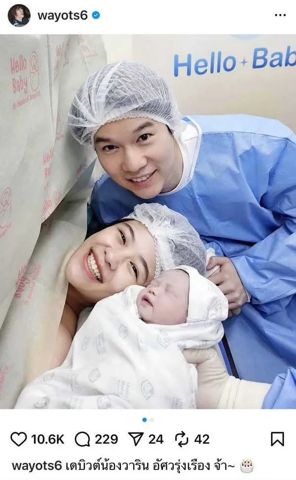 เปิดตัวลูกสาวคนแรก หมอเก่ง วาโย อดีตนักร้องเวทีเดอะสตาร์และนักการเมืองหนุ่มไฟแรง โพสต์อวดโฉมลูกสาว "น้องวาริน" ครั้งแรกลงไอจี ทิม พิธา - มดดำ คชาภา ร่วมคอมเมนต์ต้อนรับหลานสาวตัวน้อย