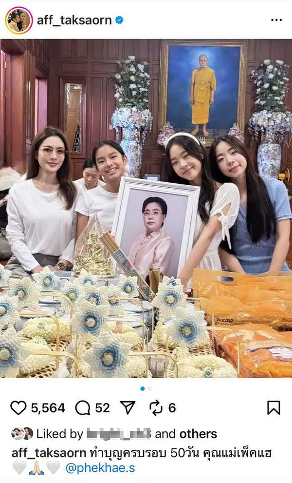โดยได้โพสต์ภาพร่วมเฟรมกับพี่สาวและน้องสาว นนกุล พร้อมข้อความว่า "ทำบุญครบรอบ 50วัน คุณแม่เพ็คแฮ @phekhae.s"