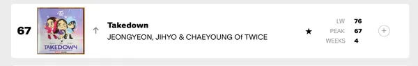ปัจจุบันนี้เพลงประกอบภาพยนตร์อนิเมชั่น KPop Demon Hunters กำลังกลายเป็นกระแสร้อนแรง รวมถึง 'Takedown' ของ TWICE ด้วย ซึ่งที่ผ่านมา 'Takedown' ก็สามาถเดบิวต์ชาร์ต Billboard HOT 100 อันดับที่ 86 และพุ่งสูงสุดขึ้นไปที่อันดับ 67 ในขณะที่เพลง Strategy ก็กลับมาติดชาร์ต Billboard HOT 100 ได้เป็นครั้งแรก โดยเปิดตัวที่อันดับ 92