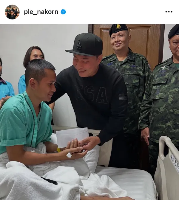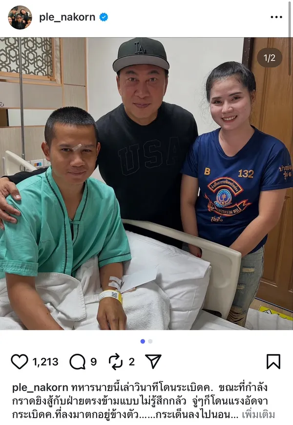 เรียกว่ายังคงเป็นอีกหนึ่งคนบันเทิงที่ไม่นิ่งนอนใจกับเหตุบ้านการเมืองอย่าง "เปิ้ล นาคร" ที่ล่าสุดได้เดินทางให้กำลังใจทหารที่ได้รับผลกระทบจากเหตุการชายแดนน โดยเขาได้โพสต์ภาพขณะที่เข้าเยี่ยม พร้อมแคปชั่นว่า "ทหารนายนี้เล่าวินาทีโดนระเบิดค. ขณะที่กำลังกราดยิงสู้กับฝ่ายตรงข้ามแบบไม่รู้สึกกลัว จู่ๆก็โดนแรงอัดจากระเบิดค.ที่ลงมาตกอยู่ข้างตัว……กระเด็นลงไปนอนจุก เลือดออกจากปาก….สะเก็ดระเบิดเต็มตัว…….ใจนายไทยมาก…..#ไทยนี้รักสงบแต่ถึงรบไม่ขลาด"