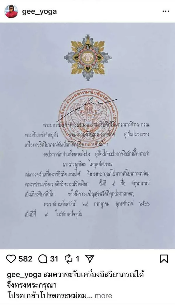 นับเป็นเกียรติยศแก่วงศ์ตระกูลของนักแสดงรุ่นใหญ่ ป้าจิ๊ อัจฉราพรรณ ไพบูลย์สุวรรณ เป็นอย่างยิ่ง เมื่อทรงพระกรุณาโปรดเกล้าพระราชทานเครื่องหมายแห่งความดีให้ โดยที่เจ้าตัวได้โพสต์แจ้งข่าวผ่านอินสตาแกรมส่วนตัว ระบุข้อความว่า..