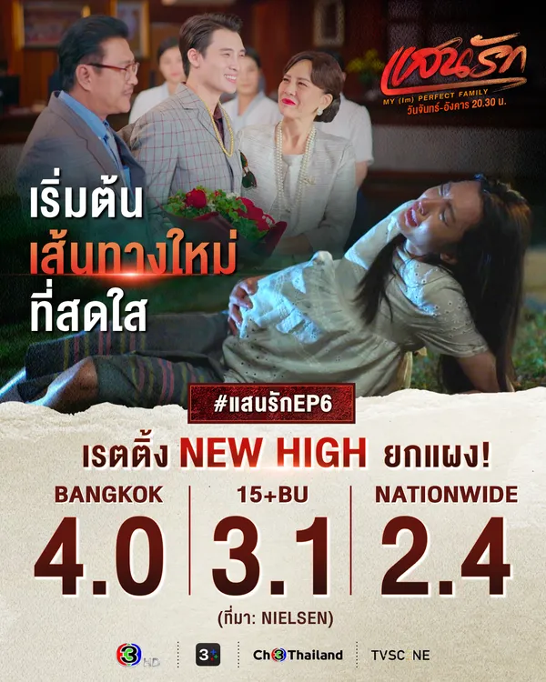 เมื่อตระกูล “ตรงพานิชย์” ต้อนรับลูกชาย รัก (มีน พีรวิชญ์) กลับมาเริ่มต้นชีวิตใหม่ที่สดใส เรียนจบนอก และไม่ต้องรับผิดชอบสะใภ้ที่ไม่ต้องการ! อย่าง จันทร์แรม (เอนจอย ธิดารัตน์) ทำเอาคนดูสะเทือนใจส่งให้ อีพี 6 เรตติ้งพุ่งทะลุ NEW HIGH ยกแผงทุบสถิติยืน 1 ทุกพื้นที่ กรุงเทพฯ ฟาดไปถึง 4.0 กลุ่ม 15 BU+ (Bangkok and Urban) ตีแตกไปถึง 3.1 ทั่วประเทศ 2.4 ซึ่งตอนนี้ต้องจับตาดูความสัมพันธ์ของ รวี (กองทัพ พีค) และ ราณี (พีพี ปุญญ์ปรีดี) เพราะหลังเรียนจบราณีก็ได้ไปเรียนต่อเมืองนอกเพราะเป็นรางวัลที่ขอไว้ เส้นทางความรักของทั้งคู่จะเดินไปทางไหนต่อต้องรอลุ้น!