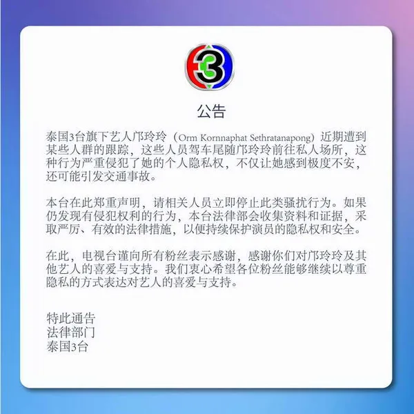 จากกรณีการจัดกิจกรรม ORM FULL MOON Fansign Event In Changsha เมื่อวันที่ 20 สิงหาคม 2568 ที่ผ่านมา ซึ่งสถานีโทรทัศน์ไทยทีวีสีช่อง3 (สถานีฯ) ได้คัดเลือกและแต่งตั้งให้บริษัท ทศทิศ มีเดีย จำกัด เป็นผู้จัดงาน ซึ่งในระหว่างการจัดกิจกรรม ทางสถานีฯ