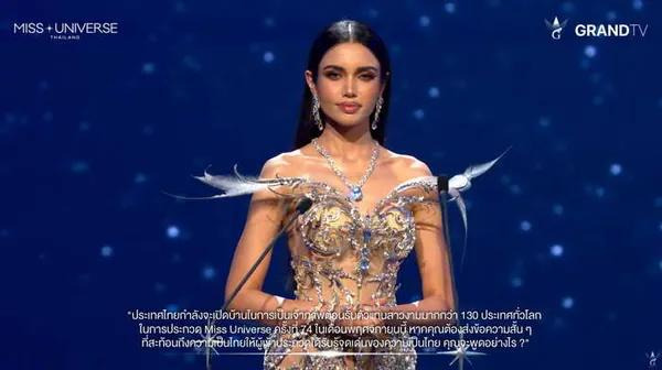 โดยที่คำถามสุดท้ายบนเวที มิสยูนิเวิร์ส ไทยแลนด์ 2025 ถามว่า "ประเทศไทยกำลังจะเปิดบ้านต้อนรับนางงามกว่า 130 ประเทศทั่วโลกในการประกวดมิสยูนิเวิร์สครั้งที่ 74 ในเดือนพฤศจิกายนนี้ หากคุณต้องการส่งข้อความสั้น ๆ ที่สะท้อนถึงความเป็นไทยให้ผู้เข้าประกวดได้รับรู้จุดเด่นของความเป็นไทย คุณจะพูดอะไร"
