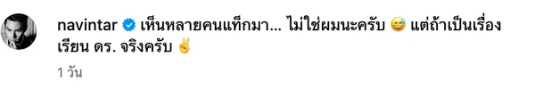 “นาวิน ต้าร์” แจงแล้วผ่านคอมเมนต์ หลังถูกจับตามองเป็นดาราชายดีกรีดอกเตอร์ทำพฤติกรรมแย่