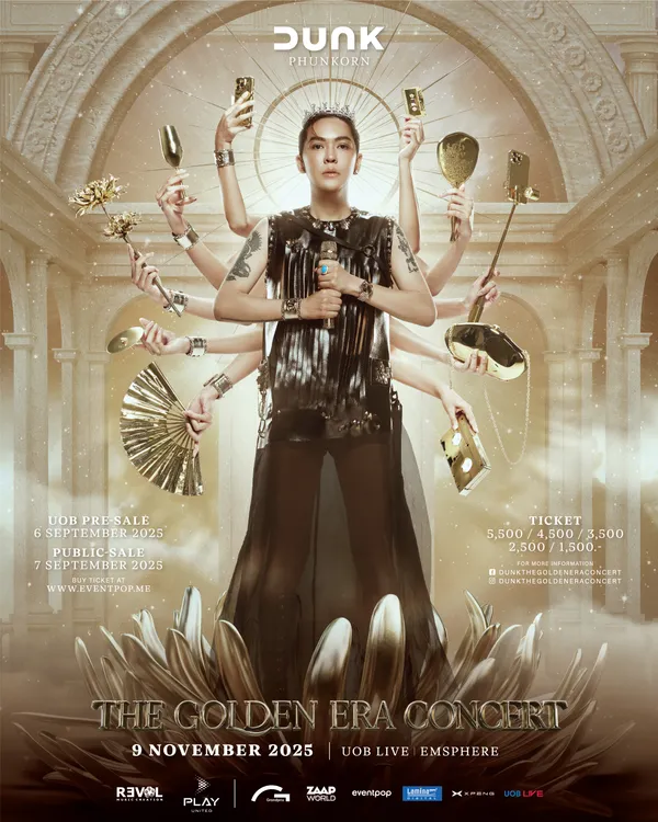 ถึงเมียเก่า เมียใหม่ ลูกๆ ทุกคนของแม่นาย นี่ไม่ใช่การกลับมา แต่เป็นการประกาศยุคทอง!! กดบัตรให้ทัน แล้วไปเปิดประตูสู่จักรวรรดิแห่งความรุ่งโรจน์กับแม่ด้วยกันที่ www.eventpop.me/s/dunkgoldenera รอบพรีเซลส์ยูโอบี วันที่ 6 กันยายน 2025 เวลา 10:00 - 23:59 น. และรอบจำหน่ายบัตรทั่วไป 7 กันยายนนี้ เวลา 10:00 น. เป็นต้นไป บัตรราคา 5,500 / 4,500 / 3,500 / 2,500 / 1,500.-