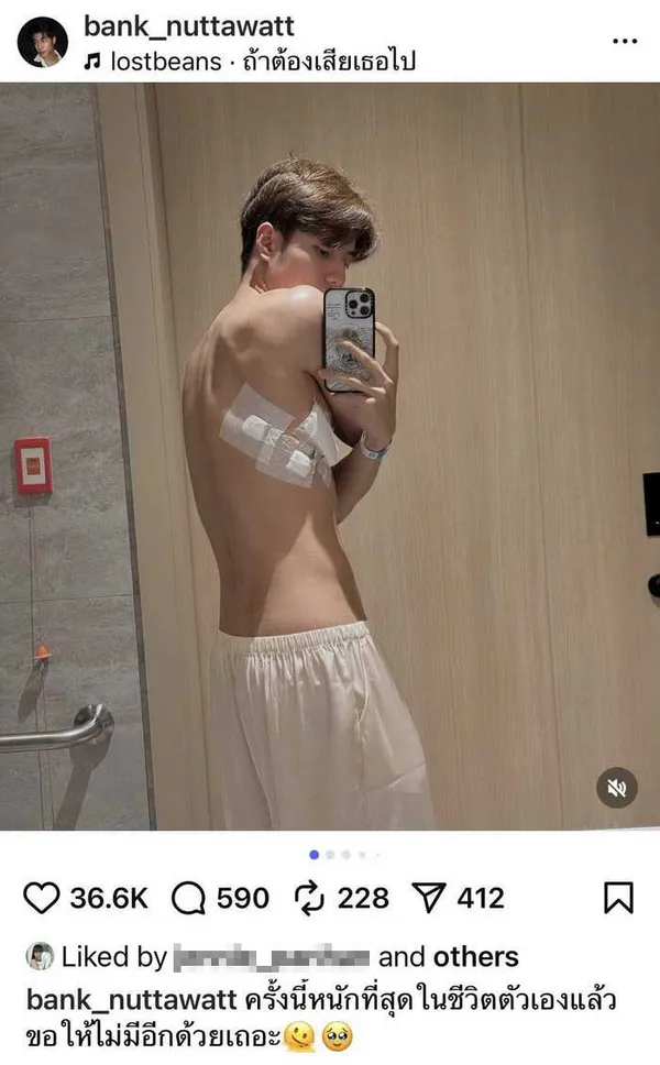 ครั้งนี้หนักสุดในชีวิต! นักแสดงหนุ่ม แบงค์ ณฐวัฒน์ โพสต์ภาพตัวเองนอนอยู่ในโรงพยาบาล พร้อมสวมเครื่องช่วยหายใจ และบาดแผลบริเวณหน้าอกและแผ่นหลัง แฟนคลับแห่ส่งกำลังใจแน่นไอจี