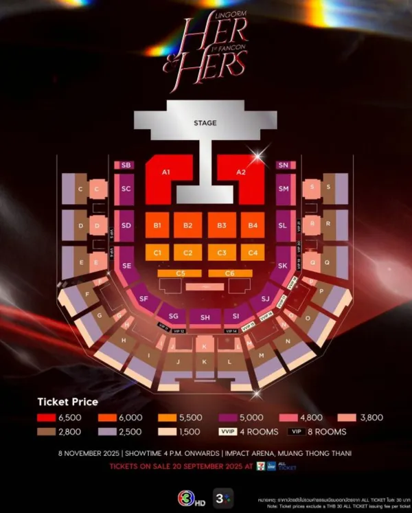 เรียกว่าเปิดพรีออเดอร์แท่งไฟให้แฟนคลับได้ซื้อกันไปแล้วก่อนหน้านี้ โดยก็ได้ปิดจำหน่ายเป็นที่เรียบร้อย สำหรับแท่งไฟของ “หลิง-ออม” และแน่นอนว่าเมื่อมีแท่งไฟ เราก็ต้องมีโอกาสได้ใช้งาน เพราะทั้งสองสาวไม่ปล่อยให้แฟนๆ ต้องรอนานทางแอคเคาท์ออฟฟิศเชียลของช่อง 3 ได้ประกาศแฟนคอนครั้งแรกของทั้งคู่ในงาน “HER & HERS LINGORM 1st FANCON” โดยงานนี้มาทั้งคลิป ทั้งภาพ ทั้งผัง แถมสิทธิพิเศษบอกเลยว่าจัดเต็ม!! โดยงานนี้จะเกิดขึ้นในวันที่ 8 พฤศจิกายนนี้ เจอกันได้เลยที่อิมแพ็ค อารีน่า เมืองทองธานี บัตรราคา 6,500 / 6,000 / 5,500 / 5,000 / 4,800 / 3,800 / 2,800 / 2,500 / 1,500 ส่วนห้อง VVIP มีทั้งหมด 4 ห้อง ราคาที่นั่งละ 8,800 บาท และห้อง VIP จำนวน 8 ห้อง ราคาที่นั่งละ 7,800 บาท