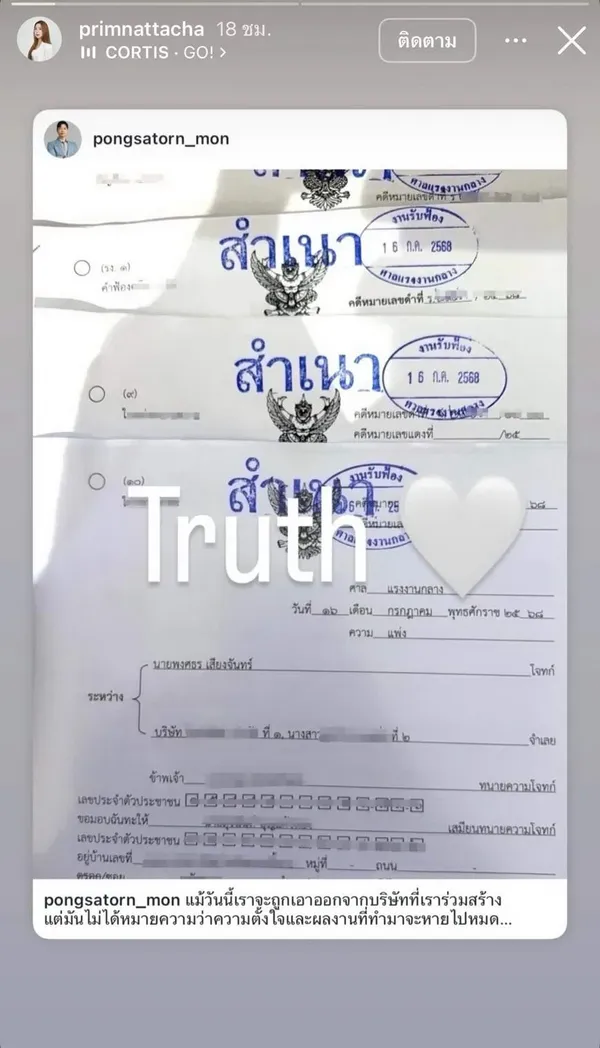 ความจริงมีเพียงหนึ่งเดียว! นักธุรกิจสาว พริม ณัฐชา หุ้นส่วนร่วมแบรนด์เครื่องสำอาง Fleen Beauty กับนักแสดงสาว ออม สุชาร์ มานะยิ่ง โพสต์โชว์สำเนาคำฟ้อง หลังจากนี้ให้ "ศาล" เป็นผู้ตัดสิน