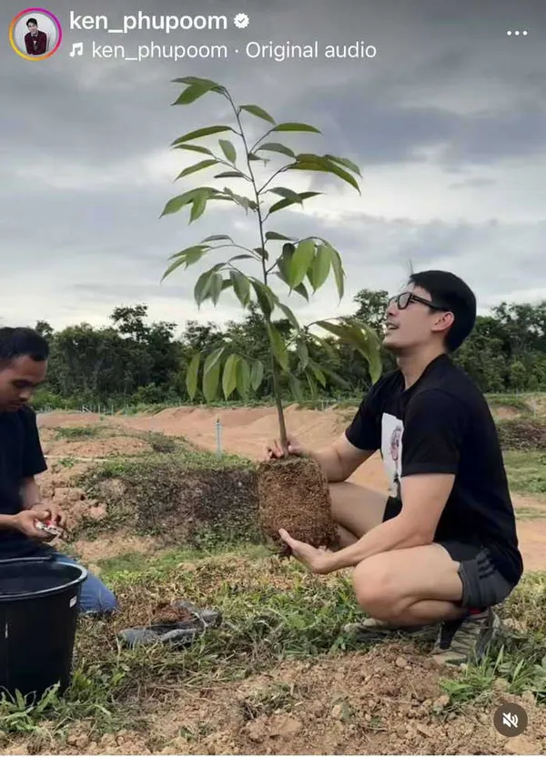 โดยล่าสุดหนุ่มเคนได้โพสต์คลิปการปลูกทุเรียนต้นแรกของสวนให้แฟนๆได้ชมกัน พร้อมระบุข้อความแทนความรู้สึกว่า..