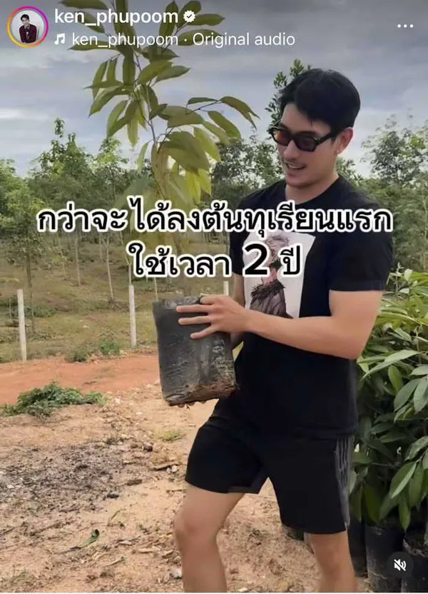 เสี่ยเจ้าของสวน เคน ภูภูมิ โพสต์คลิปการลงทุเรียนต้นแรกของสวน ทุ่มเท 2 ปีกว่าจะมีวันนี้ ยอมรับไม่ง่ายเลย แต่หลังจากนี้ต้นไม้จะเลี้ยงเราเอง เชื่อไม่มีอะไรได้มาง่ายๆ ชาวเน็ตและชื่นชมรัวๆ