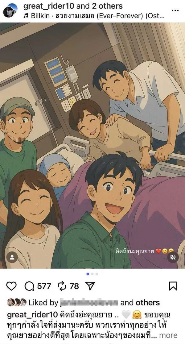 และล่าสุดหนุ่ม เกรท วรินทร ได้โพสต๋ข้อความถึงคุณยายอันเป็นที่รักว่า "คิดถึงอ่ะคุณยาย .. ขอบคุณทุกๆกำลังใจที่ส่งมานะครับ พวกเราทำทุกอย่างให้คุณยายอย่างดีที่สุดโดยเฉพาะน้องๆของผมที่ดูแลคุณยายอย่างเต็มที่มาตลอด รักนะทุกคน