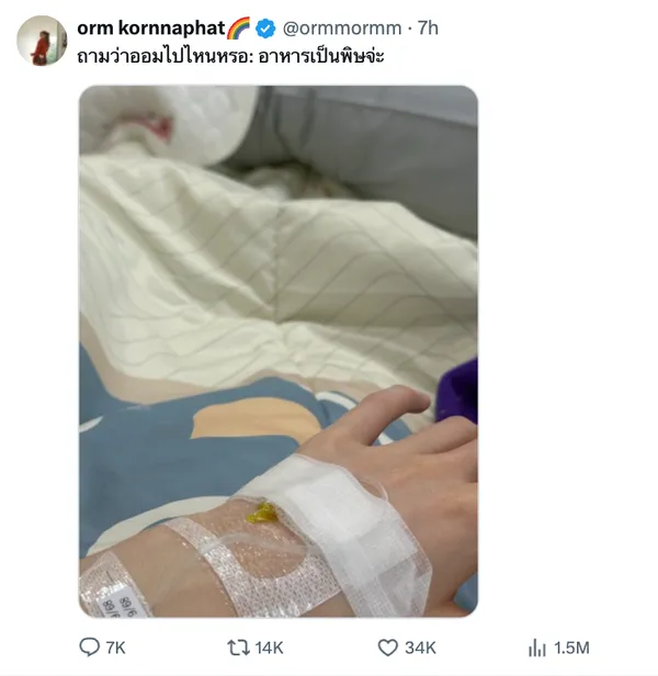 แฟนคลับส่งกำลังใจ หลัง “ออม กรณ์นภัส” โพสต์ภาพพร้อมข้อความผ่าน X ป่วยอาการเป็นพิษ