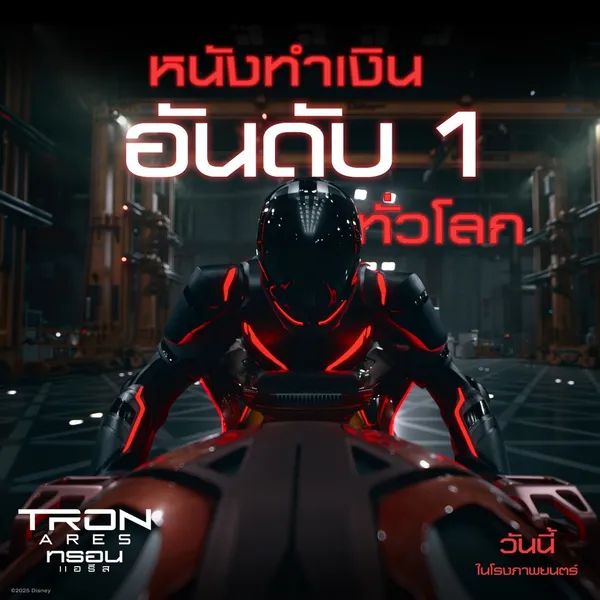 สมกับเป็นภาพยนตร์สุดแรง เมื่อเหล่าเอไออัจฉริยะซิ่งไลท์ไซเคิลพา “Tron: Ares ทรอน แอรีส” ภาพยนตร์แอ็กชันไซไฟแห่งปีจากดิสนีย์ทะยานสู่ตำแหน่งภาพยนตร์อันดับ 1 ทั่วโลก ณ เวลานี้ พร้อมกวาดคำชมในงานภาพ งานเพลง และเนื้อหาสุดล้ำ จากผู้ชมมาได้อย่างท่วมท้น