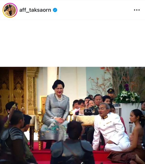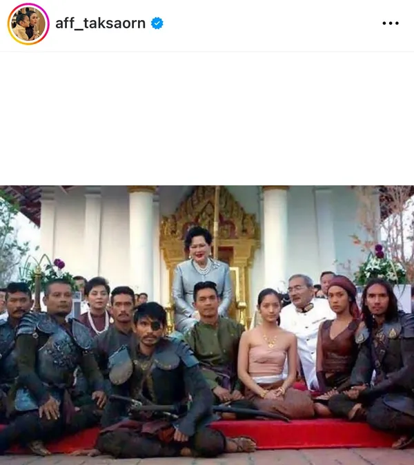 พร้อมทั้งสำนึกในพระมหากรุณาธิคุณของสมเด็จพระพันปีหลวงที่ทรงมีต่อวงการภาพยนตร์ไทย โดยจากภาพที่ "แอฟ" โพสต์มาจากภาพยนตร์ประวัติศาสตร์ชุดสุริโยไท - ตำนานสมเด็จพระนเรศวรมหาราช ที่ในเรื่องเธอรับบทเป็น "มณีจันทร์"