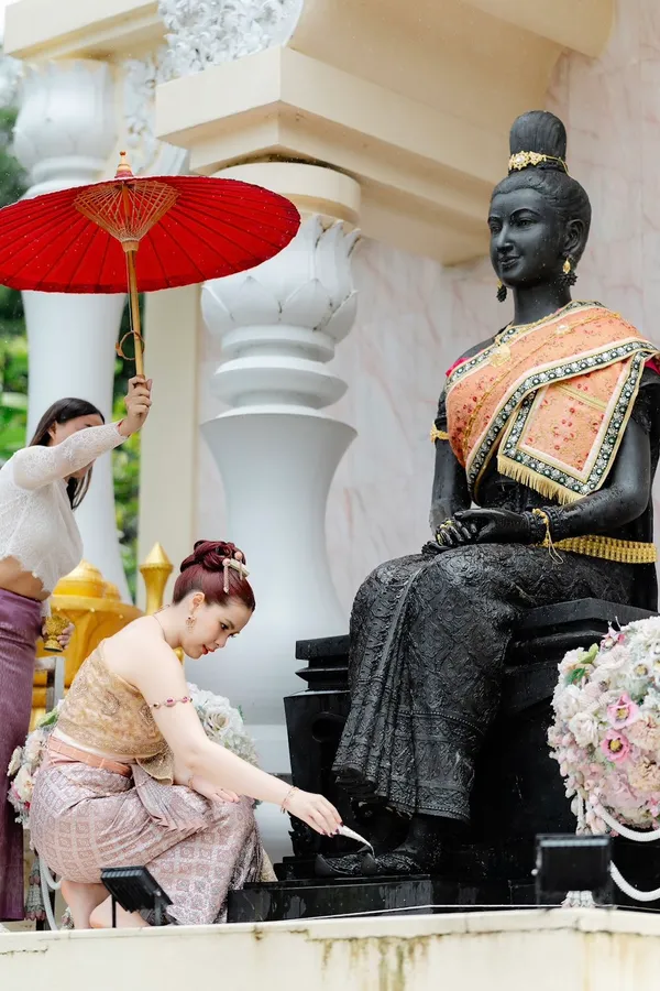 และอีกสิ่งที่เห็นประจักษ์ตาก็คือความงดงามของ มีนตรา อินทิรา ที่มาในชุดไทยจักรีประยุกต์สีชมพูกลีบบัว ให้แฟน ๆ ได้เห็นอีกหนึ่งมุมของเธอ เรียกได้ว่ามีครบจบในคนเดียว ให้แฟน ๆ ได้ลุ้นทุกครั้งที่ปรากฏตัวว่าจะเสิร์ฟอะไรให้ว้าวกันอีก โดยเจ้าตัวเผยว่า “บอกตรง ๆ มีนไม่ค่อยถนัดเท่าไหร่กับการแต่งตัวแบบนี้ แต่ตั้งใจใส่เพื่อมาทำพิธีบวงสรวงถวายแม่ เพราะมีนนับถือท่านมาก ๆ ค่ะ และมีนก็ขอพรเผื่อทุกคนที่มีนรักและก็รักมีน ให้ได้รับพรจากแม่ไปพร้อมกับมีนนะคะ”