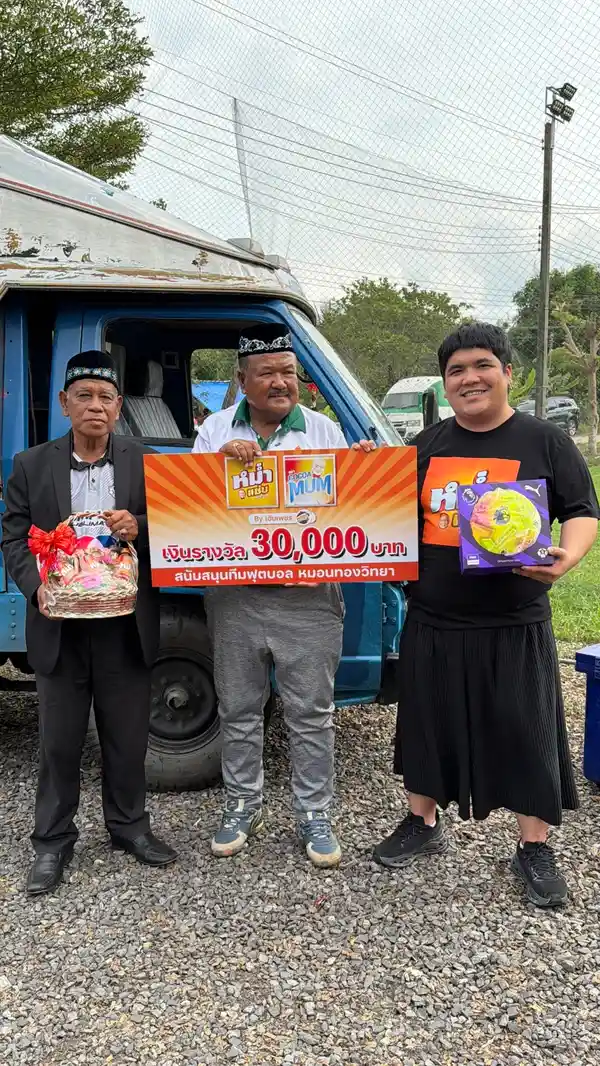 วงการลูกหนังเยาวชนได้เฮกันอีกครั้ง เมื่อ “แจ็ค แฟนฉัน” เดินทางไปเป็นตัวแทนของสองศิลปินดัง “หม่ำ จ๊กม๊ก” และ “เพชร สหรัตน์” ส่งมอบกำลังใจและเงินอัดฉีดให้กับ ทีมฟุตบอลโรงเรียนหมอนทองวิทยา และ อาจารย์สกล เกลี้ยงประเสริฐ โค้ชผู้ปลุกปั้นทีมเด็กไทยให้ก้าวไกล งานนี้ไม่ใช่แค่กำลังใจธรรมดา แต่สองพี่ใหญ่ใจดียังส่งของสนับสนุนแบบจัดเต็ม ทั้ง โกโก้หม่ำ, น้ำปลาร้าหม่ำแซ่บ,ลูกฟุตบอลพรีเมียร์ลีก และเงินสดจำนวน 30,000 บาท