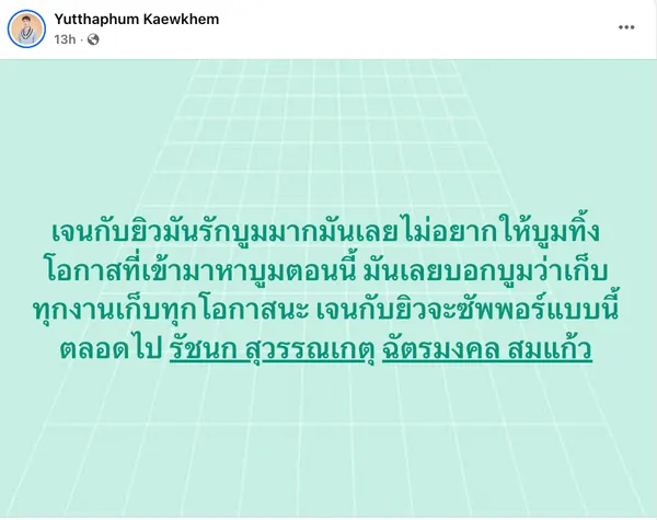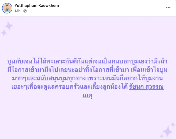 ซึ่งหลังจากที่โพสต์ดังกล่าวถูกโพสต์ออกมาก็ได้รับคอมเมนต์จากแฟนๆ เป็นจำนวนมาก ถือว่าเป็นการเคลียร์ชัดว่าทั้งสองไม่ได้มีปัญหาทะเลาะกันแต่อย่างใด เชื่อว่าหลังจากนี้คงได้เห็นทั้งสองกลับมาร่วมงานกันอีกอย่างแน่นอน