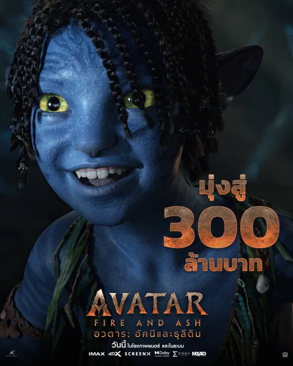 ยังคงสร้างปรากฏการณ์อย่างต่อเนื่องสำหรับภาพยนตร์ฟอร์มยักษ์ระดับโลก “Avatar: Fire and Ash อวตาร: อัคนีและธุลีดิน” ที่ปลุกกระแสผู้ชมให้กลับเข้าสู่โรงภาพยนตร์ พร้อมเดินหน้ากวาดรายได้ในประเทศไทยมุ่งสู่ 300 ล้านบาท การกลับมาครั้งนี้ไม่เพียงตอกย้ำความยิ่งใหญ่ของจักรวาล Avatar แต่ยังยกระดับประสบการณ์การชมภาพยนตร์ในโรงให้ “ต้องดูบนจอใหญ่เท่านั้น” ด้วยงานภาพอันตระการตา เทคโนโลยีการถ่ายทำระดับโลก ฉากแอ็กชันที่ทรงพลังยิ่งกว่าเดิม และไฮไลต์ที่ผู้คนพูดถึงกันมากคือชาวนาวีเผ่าใหม่ “เผ่าธุลี” กับผู้นำหญิงสุดโหด “วารัง” ตัวร้ายเสน่ห์แรงที่สร้างแรงสั่นสะเทือนให้กับสมดุลของโลกแพนดอร่า อีกทั้งยังทำให้ศึกใหญ่ครั้งนี้เดือดและเข้มข้นกว่าทุกภาคที่ผ่านมา ใครยังไม่ได้ดู อย่าพลาด “Avatar: Fire and Ash อวตาร: อัคนีและธุลีดิน” ฉายแล้ววันนี้ ในโรงภาพยนตร์ ทั้งในระบบ IMAX, Dolby Vision และ Atmos และระบบพิเศษทั่วประเทศ