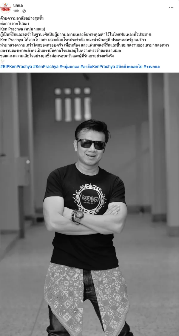 ล่าสุดเพจ "นกแล" ได้โพสต์ภาพพร้อมข้อความว่า "ด้วยความอาลัยอย่างสุดซึ้ง ต่อการจากไปของ Ken Prachya (หนุ่ม นกแล) ผู้เป็นที่รักและจดจำในฐานะศิลปินผู้ฝากผลงานเพลงอันทรงคุณค่าไว้ในใจแฟนเพลงทั่วประเทศ Ken Prachya ได้จากไป อย่างสงบด้วยโรคประจำตัว ขณะพำนักอยู่ที่ ประเทศสหรัฐอเมริกา ท่ามกลางความเศร้าโศกของครอบครัว เพื่อนพ้อง และแฟนเพลงที่รักและชื่นชมผลงานของเขามาตลอดมา ผลงานของเขาจะยังคงเป็นแรงบันดาลใจและอยู่ในความทรงจำของเราเสมอ ขอแสดงความเสียใจอย่างสุดซึ้งต่อครอบครัวและผู้ที่รักเขาอย่างแท้จริง" ทาง TNN ขอแสดงความเสียใจกับครอบครัวหนุ่ม นกแล มาในโอกาสนี้