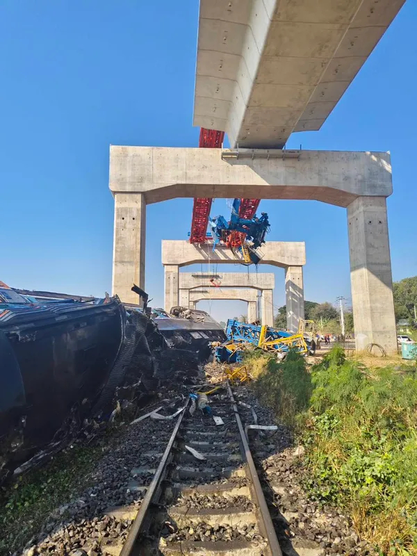 วัสดุก่อสร้างตกใส่รถไฟด่วนพิเศษ ขบวน 21 โคราช ดับ-เจ็บหลายราย