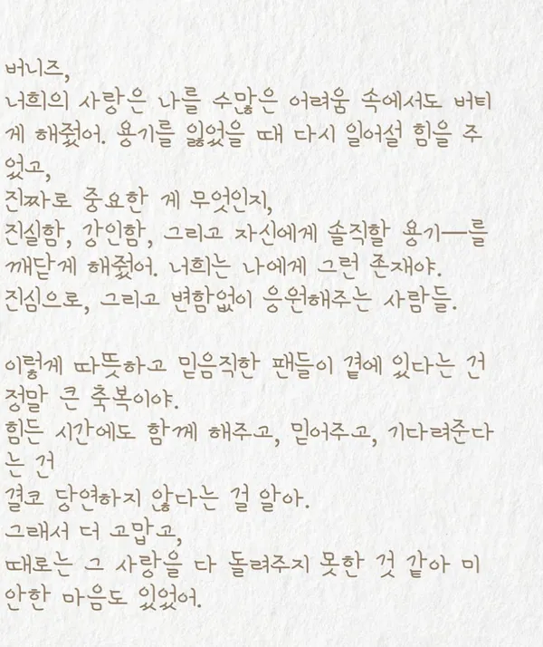 ในจดหมายแดเนียลกล่าวขอบคุณแฟน ๆ หรือ Bunnies โดยบอกว่าความรักและกำลังใจจากแฟนคลับคือแรงผลักดันสำคัญที่ทำให้เธอยืนหยัดได้ในช่วงเวลาที่ยากลำบาก พร้อมย้ำว่าแฟน ๆ คือคนที่สอนให้เขาเข้าใจความจริง ได้เข้มแข็ง และการกล้าที่จะเป็นตัวเอง